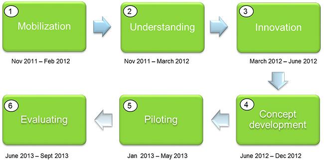 In the innovation phase we have been working in groups using open innovation tools like visualization and storytelling. We have also been using the business model canvas to get a better understanding of the involved business models.