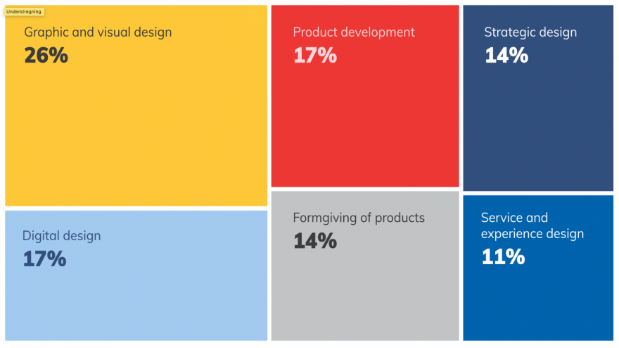 Looking at the design professionals through the lens of disciplines, approximately 60% of the design professionals in the Nordic countries work within classic design disciplines such as graphic design, product development and form giving of products. 40% of the design professionals work in newer fields such as digital design, strategic design and service and experience design. There is no reason not to believe that the newer field of design will expand in the years to come.